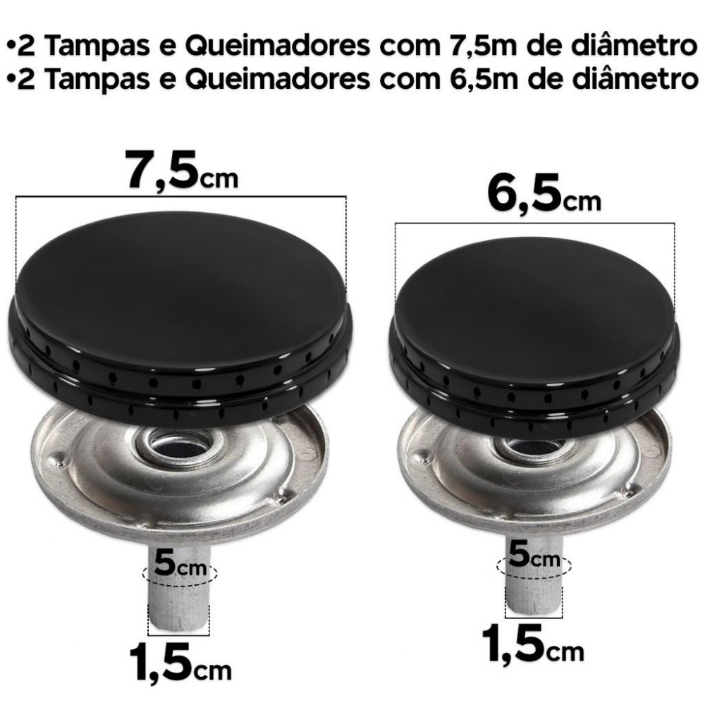 kit 4 bocas Fogão Esmaltec Espalhador + Queimador Veneza/ Bali/ Ágata/ Munique/ Caribe