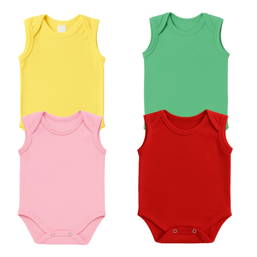 Kit 4 Body Regata Sem Manga Liso Infantil Bebê Menino Menina 100% Algodão - Confortável
