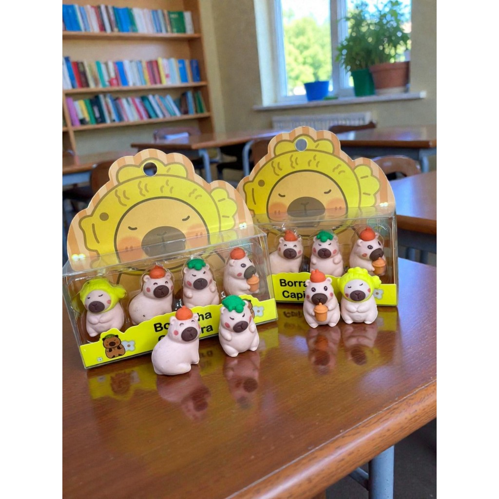 ✨🧡 Prepare-se para o ataque de fofura capivarística! 🧡✨ Nosso Kit com 4 Borrachas de Capivara chegou para transformar qualquer momento de estudo em diversão pura! Cada borracha traz uma capivara diferente — todas super fofas, arredondadinhas e cheias de personalidade — prontas para acompanhar você na escola, no trabalho ou no estojo do dia a dia. Feitas com material macio, que apaga super bem e não esfarela facilmente, essas mini capivarinhas são perfeitas para quem ama papelaria criativa e quer dar aquele toque especial na rotina. Além disso, são tão bonitinhas que dá até vontade de colecionar, presentear ou deixar decorando a mesa! 📝💛 Seja para escrever, desenhar, estudar ou simplesmente alegrar seus dias, essas borrachinhas vão te conquistar no primeiro olhar. 🌿🐾 Capivaras: o combo perfeito de calma, fofura e utilidade. ✨ Leve o seu kit e deixe a fofura tomar conta do seu estojo! ✨ Obs: Envio do produto e aleatorio