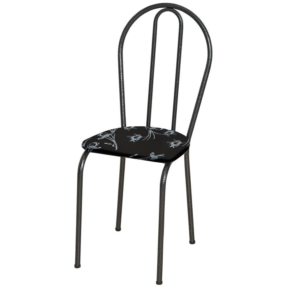 Kit 4 Cadeiras 004 Cromo Preto/Florido - Artefamol