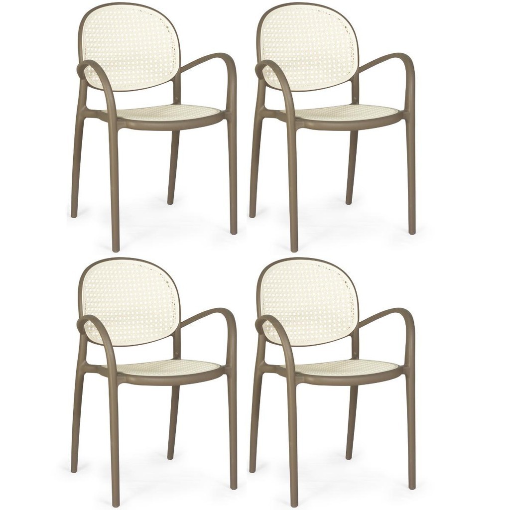 Kit 4 Cadeiras de Jantar Roma com Braço para Sala e Cozinha - Branco/Cinza Escuro