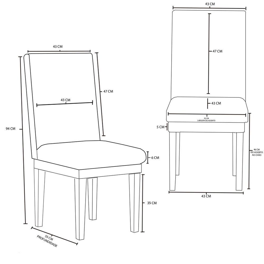 Transforme o seu ambiente com a Cadeira Reforçada Estofada. Esta cadeira é a combinação perfeita de conforto, durabilidade e um design moderno, ideal para mesas de jantar, áreas de estar e até mesmo ambientes comerciais. Especificações do produto Tecido em Suede, 100% poliéster Espuma D-23 com Alta densidade Percintas Elásticas que oferecem suporte adicional Estrutura de madeira eucalipto proveniente de reflorestamento Informações Técnicas Altura: 94 cm Largura: 45 cm Profundidade: 55 cm Peso: 7,5 kg Capacidade de Suporte: O produto suporta até 120 kg Produto embalado Altura: 44 cm Largura: 114 cm Profundidade: 75 cm Peso: 30 kg Observações Importantes O produto tem 3 meses de garantia contra defeitos de fabricação Produto possui uma embalagem segura, feita para evitar danos durante o transporte O Produto entregue é montado A cor real pode variar ligeiramente devido às configurações da tela e ao tratamento das imagens O Prazo de envio é de 5 dias úteis após a confirmação da compra e enviamos para todo o Brasil Perguntas Frequentes Como devo limpar? Realizar a limpeza do tecido com um pano seco ou levemente umedecido Quantos produtos irei receber nesta compra? Você receberá 2 volumes, ou seja, quatro Cadeiras Reforçada Estofada. Para mais informações ou assistência com sua compra, nossa equipe está à disposição para ajudar