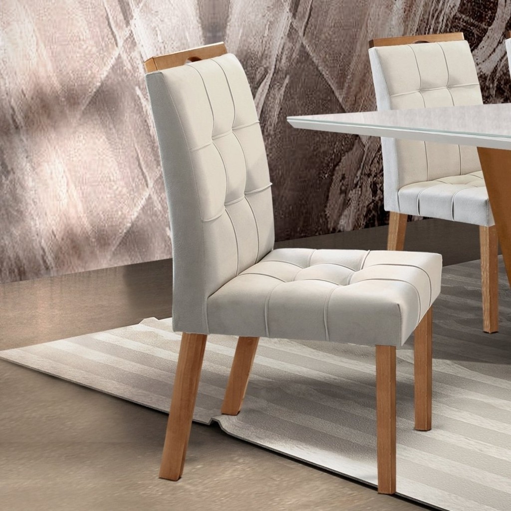 A cadeira Sophia, com sua estrutura em madeira maciça, pintura PU com acabamento amadeirado em verniz semi-brilho, trazem conforto, qualidade, beleza e toda a sofisticação que você e o seu lar merecem! Estilo: Moderno Peso (kg): 9.9 Dobrável: Não Garantia: 03 Meses Altura (cm): 99 Giratória: Não Acabamento: Pintura PU Largura (cm): 44 Suporta Até (kg): 120 Possui Espaldar: Sim Profundidade (cm): 51 Tipo de Assento: Fixo Tipo de Encosto: Fixo Escala de Brilho: Semi-Brilho Material da Base: Madeira Maciça Material dos Pés: Madeira Design da Cadeira: Outras Estofadas Origem do Produto: Nacional Ambiente Principal: Sala de Jantar Material Principal: Madeira Maciça Quantidade de Itens: 4 Estrutura do Assento: Madeira Maciça Estrutura do Encosto: Madeira Maciça Material da Estrutura: Madeira Eucalipto Tipo de Madeira Maciça: Eucalipto Possui Apoio para Braços: Não Apoio para Braços Estofado: Não Possui Assento/Encosto Estofados: Possui Encosto e Assento Estofados Marca: Espresso Móveis Cor: Champagne Cor do Produto: Champagnhe/Marfim Itens Inclusos: 2 Cadeiras Quantidade do Produto: 4