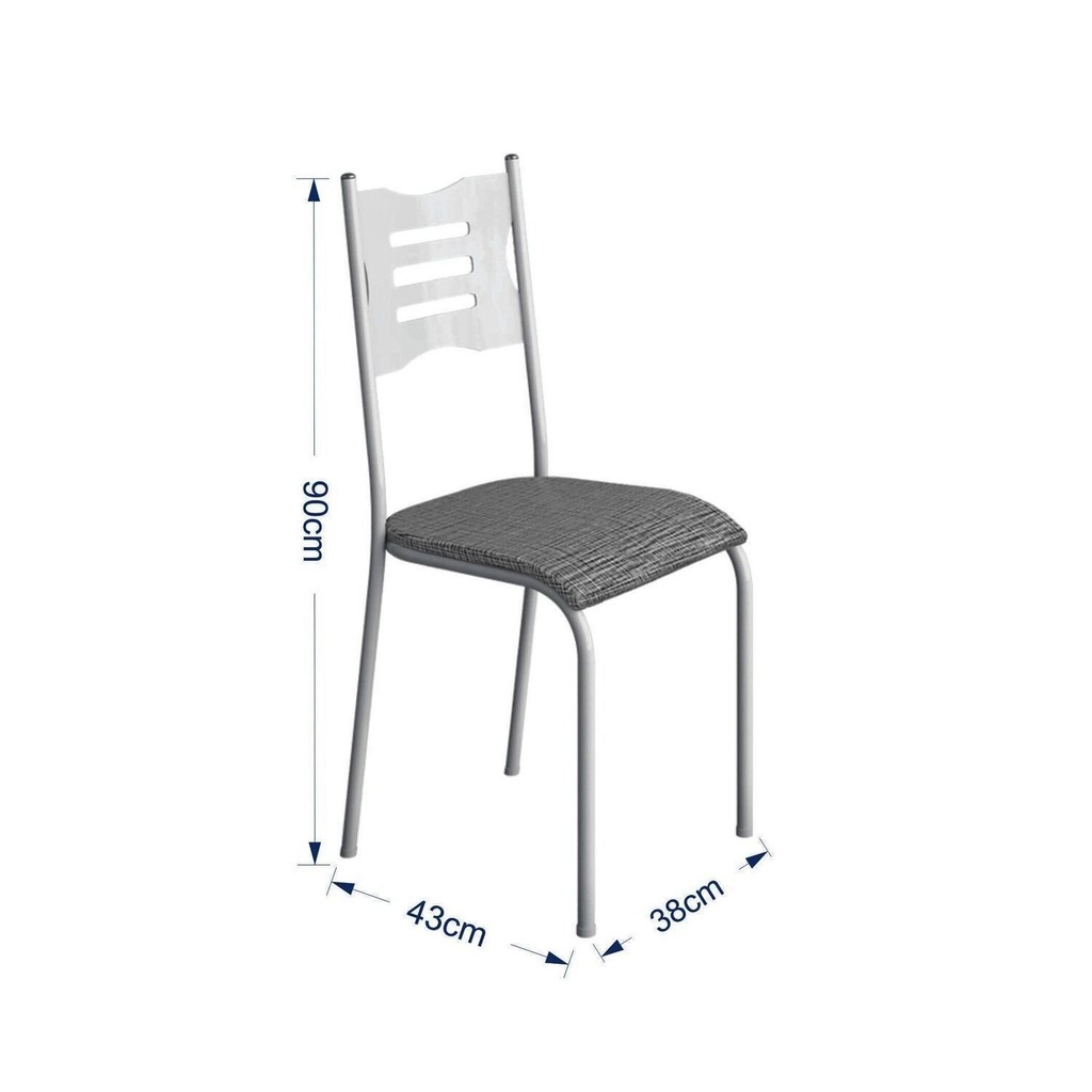 O Conjunto de 4 Cadeiras 542.slp, foi desenvolvido para trazer ainda mais beleza e conforto para o seu lar. Possui revestimento de fácil limpeza. Ainda conta com base de aço, pintura epoxi (anti-corrosão) garantindo resistência e durabilidade. *Podem ocorrer variações de cores nos assentos das cadeiras em relação às fotos.* Peso (kg): 2.9 Dobrável: Não Garantia: 03 Meses Altura (cm): 90 Giratória: Não Acabamento: Brilhante Largura (cm): 38 Cor dos Pés: Branco Possui Rodízio: Não Suporta Até (kg): 100 Profundidade (cm): 43 Tipo de Assento: Fixo Tipo de Encosto: Fixo Escala de Brilho: Brilhante Material dos Pés: Aço Origem do Produto: Nacional Ambiente Principal: Cozinha Material Principal: Aço Almofada do Assento: Fixa Quantidade de Itens: 4 Estrutura do Encosto: Aço Material da Estrutura: Aço Acabamento da Estrutura: Pintura Possui Apoio para Braços: Não Possui Apoio para os Pés: Não Altura do Assento até o Chão: 44 Possui Assento/Encosto Estofados: Possui Somente o Assento Estofado Marca: MBM DECOR Cor do Produto: Branco/Cinza Itens Inclusos: 4 Cadeiras e Kit Ferragens Cor Predominante: Branco