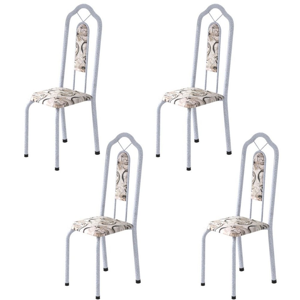 Kit 4 Cadeiras Tubular Bianca Martelado Pérola/Arabesco