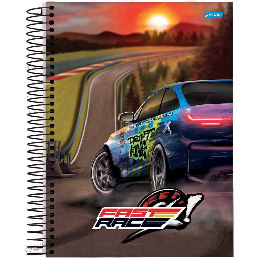 Kit 4 Cadernos Universitário 160 Folhas 10 Matérias 20X27cm Fast Race Carros Jandaia Capas Sortidas