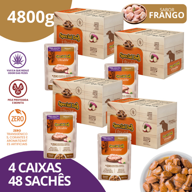 Kit 4 Caixa Sachê Adultos Raças Pequenas Sabor Frango 100g - Special Dog Ultralife