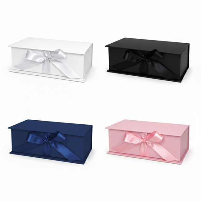 Kit 4 Caixas cartonadas 15x10x5cm modelo livro com fecho de fita de cetim