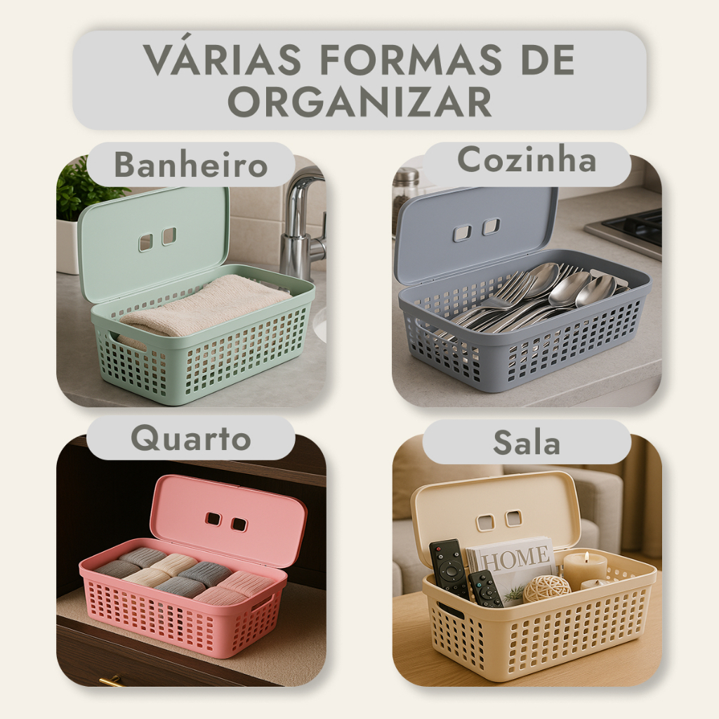 Kit 4 Caixas Organizadoras com Tampa 3,6 Litros Multiuso para Banheiro em Plástico
