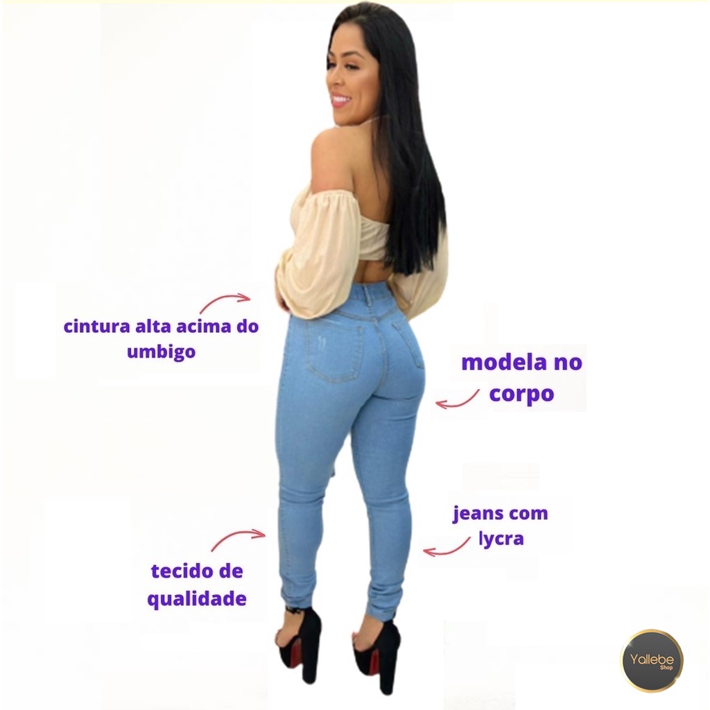 ************COMO ESCOLHER MODELOS E TAMANHOS*************** DISPONIBILIZAMOS NOSSO CHAT 24 HORAS POR DIA PARA ESCOLHAS DE MODELOS E TAMANHOS OBS: CASO NÃO RESPONDA O CHAT SERÁ ENVIADO MODELOS ALEATÓRIOS NA NÚMERAÇÃO ESCOLHIDA. KIT COM 4 CALÇAS JEANS FEMININA Skinny Cós Alto Que Empina C/ Lycra (Elastano) alta qualidade, oferecendo ótimo caimento e modelando o corpo causando um efeito de levanta e empina... Cintura Alta Com Lycra Strech _____________________ > COMPOSIÇÃO: Todas com lycra(Elastano)...75 algodão, 22 poliéster e 03 elastano ____________________ > MEDIDAS -Calças de confecção pequenas, São enviadas para quem tem as medidas informadas abaixo... -Se não tiver como medir, Sugerimos comprar um numero a mais do que usa... -Para uma compra certa evitando futuras trocas Confira a circunferência de sua cintura na altura do umbigo... FAÇA A MEDIDA USANDO UMA FITA.... ATENÇÃO AS MEDIDAS DE SEU CORPO Numero 36 serve para quem tem a Cintura de 65 a 80cm e o Quadril com 83 a 95cm por 1.0mts de altura Numero 38 serve para quem tem a Cintura de 68 a 82cm e o Quadril com 83 a 95cm por 1.0mts de altura Numero 40 serve para quem tem a Cintura de 72 a 88cm e o Quadril com 90 a 100cm por 1.0mts de altura Numero 42 serve para quem tem a Cintura de 75 a 95cm e o Quadril com 90 a 100cm por 1.0mts de altura Numero 44 serve para quem tem a Cintura de 80 a 95cm e o Quadril com 90 a 105cm por 1.0mts de altura CASO QUISER VARIADOS 4 TAMANHOS DIFERENTES AVISAR NO CHAT. -As medidas são aprimoradas podendo ter uma pequena variação de 1/2cm pra mais ou para menos. ____________________ IMPORTANTE: - SERÁ POSTADO EM NO MAXIMO 24 HORAS ÚTEIS APÓS A CONFIRMAÇÃO DO PAGAMENTO ! ____________________ SUPORTE AO CLIENTE Se surgir alguma dúvida nos mande sua pergunta logo abaixo no campo de perguntas, tem uma equipe preparada te ajudar a comprar corretamente Obrigado pela preferência, BOAS COMPRAS!!! Yallebe Shop.