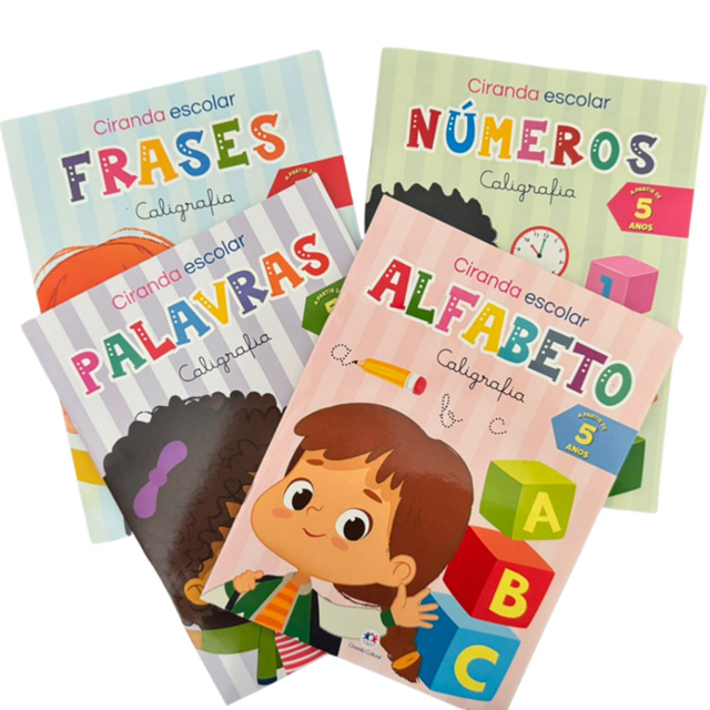 Kit 4 Caligrafia Ciranda Escolar Letras Cursiva Alfabeto Números Frases Crianças Escola