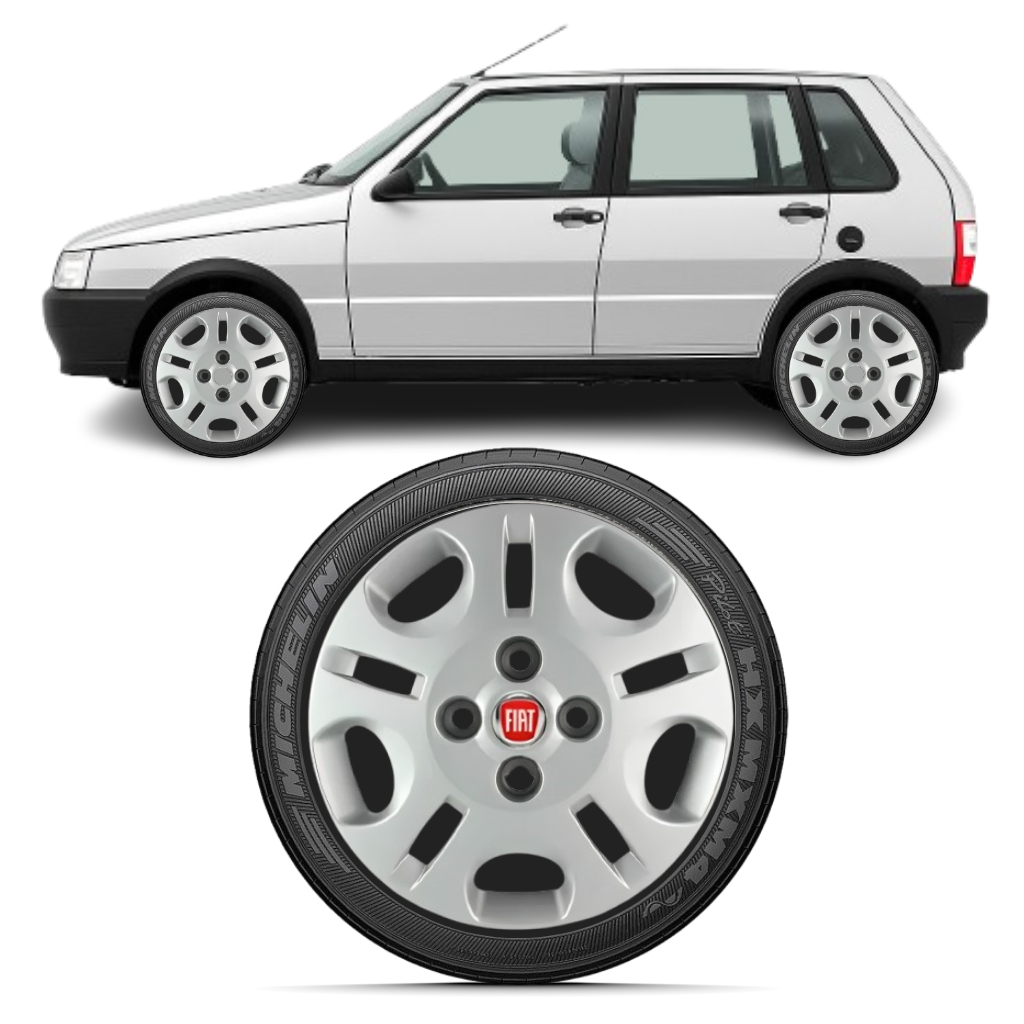 Kit 4 Calota Aro 13 Uno 2004 2005 2006 á 2013 Fire Mille Economy Prata Com Emblema