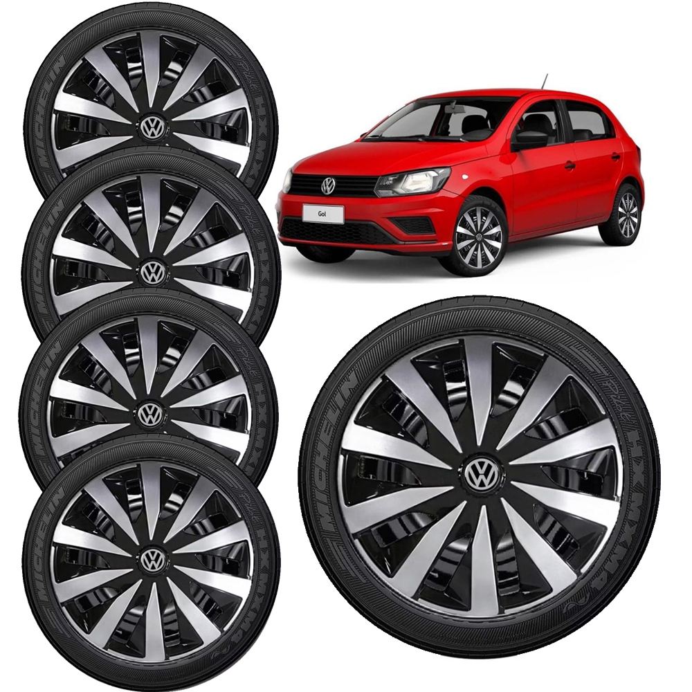 Kit 4 Calotas Lançamento Linha Seven Aro 13 14 15 Compativel Com Voyage Polo Golf Gol