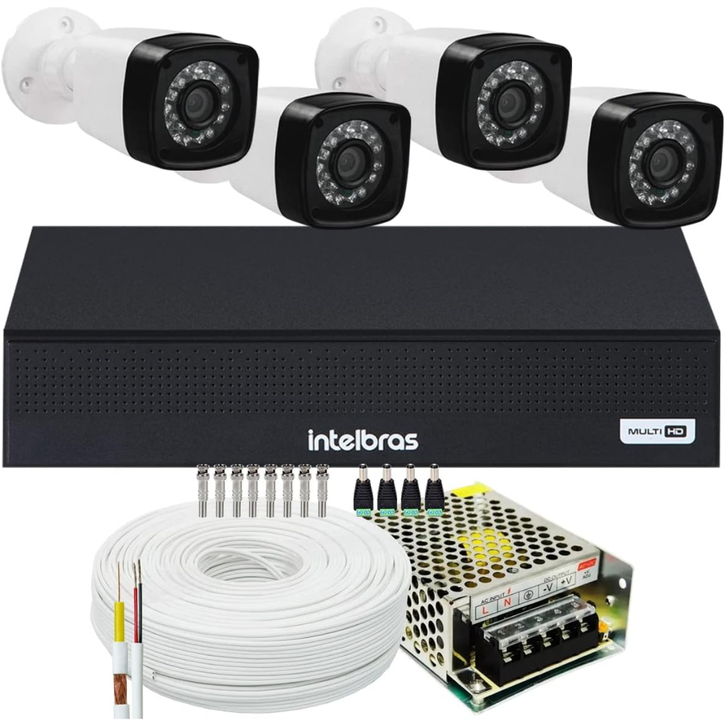 Kit 4 Cameras Segurança 1080p Full Hd 2mp Dvr Intelbras Mhdx 4ch S/hd