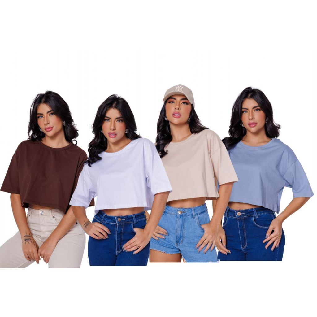 Kit 4 Camiseta Feminina Cropped Básica De Malha Algodão Plus Size