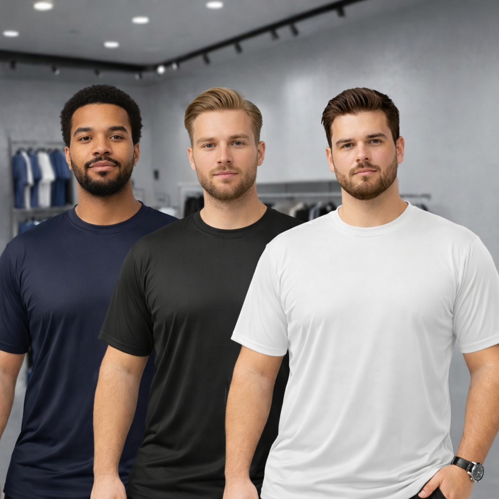 Kit Camiseta Dry Fit Masculina em Poliéster – Tecido Colmeia ✔ Tecido leve, confortável e respirável ✔ Tecnologia Dry Fit que ajuda a manter o corpo seco ✔ Malha em poliéster com textura colmeia (melhor ventilação) ✔ Secagem rápida – não retém suor nem cheiro ✔ Ideal para academia, corrida, treino e uso no dia a dia 🧵 MATERIAL 100% Poliéster Tecido Dry Fit com textura colmeia Toque macio, leve e resistente 👕 MODELAGEM Modelagem confortável (não é slim) Caimento leve no corpo Gola em tecido tradicional (mesmo material da camiseta) Acabamento reforçado 🎯 INDICAÇÃO DE USO Academia Corrida Treino Dia a dia Trabalho e lazer 🎨 CORES DISPONÍVEIS Preto Branco Azul Marinho Cinza / Grafite 📦 DIFERENCIAIS 👉 Não esquenta 👉 Não desbota 👉 Não fica com cheiro 👉 Extremamente leve e confortável ⚠️ ATENÇÃO Confira a tabela de medidas antes da compra Modelagem confortável (não é justa) 💰 VANTAGEM Leve mais peças e economize com nossos kits 🔥