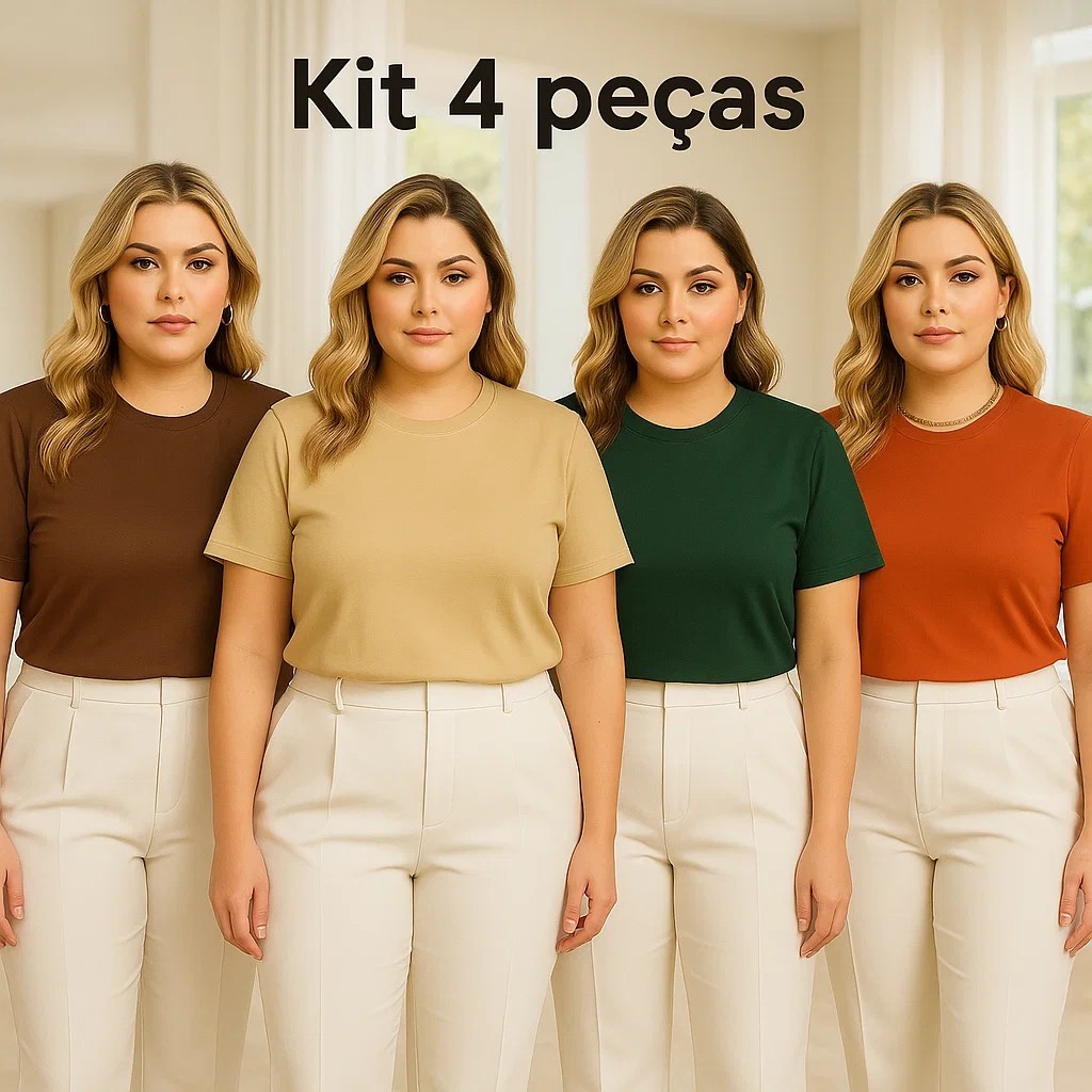 | Kit 4 Camisetas Feminina Plus Size Básica 100% Algodão Premium Gola... este produto | R$ 129,90 | — | 4.9/5 | 67 |