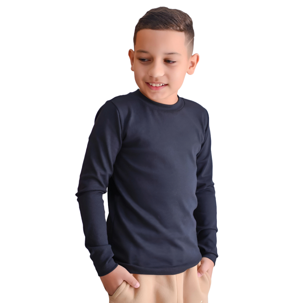 Kit 4 Camisetas Manga Longa Infantil Menino Básica Lisa Tamanho 2 ao 12, Camisa Inverno 100% algodão
