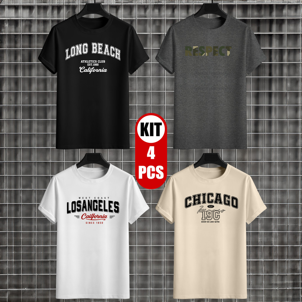Kit 4 Camisetas Masculina Estampada Respect 100% Algodão