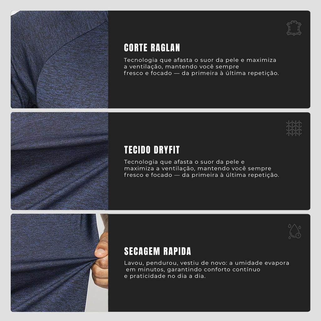 Ideal para quem precisa de mais opções na semana de treinos, o Kit 4 Camisetas Dry Alpha Masculina combina desempenho, conforto e praticidade em um conjunto pensado para rotinas intensas. Com quatro peças versáteis, é uma solução funcional para quem treina com frequência e valoriza liberdade de movimento. As camisetas possuem modelagem de caimento reto, manga curta e gola redonda, oferecendo ajuste confortável e uso descomplicado em diferentes modalidades. O design esportivo permite transitar facilmente entre academia, treinos ao ar livre e uso diário. Produzidas em poliéster, as peças apresentam variação de composição conforme a cor: a camiseta preta é confeccionada em 97% poliéster e 3% elastano, enquanto as demais cores são 100% poliéster. Essa combinação garante leveza, resistência e conforto durante os exercícios. Indicadas para academia, ciclismo, corrida, futebol, hyrox, musculação, spinning, beach tennis, crossfit, HIIT, society, treino funcional, treino intenso, treino em casa e atividades ao ar livre, atendem diferentes estilos e níveis de prática esportiva. Benefícios do kit: -Kit com 4 camisetas masculinas. -Demais cores em 100% poliéster. -Ideal para treinos variados e rotina esportiva intensa. -Fácil de lavar, seca rápido e mantém a forma. Observação: Nossas camisas brancas, pretas e mescla possuem construções de tecido diferentes, ajustadas para valorizar cada cor sem comprometer a qualidade. A branca tem camada dupla para evitar transparência, a preta usa fios mais finos que trazem uma textura mais suave, e as mesclas têm uma composição específica devido a mescla de fios e pigmentos. Para quem busca variedade, desempenho e ótimo custo-benefício, este kit é uma escolha prática para manter o foco no treino e a rotina sempre em movimento.