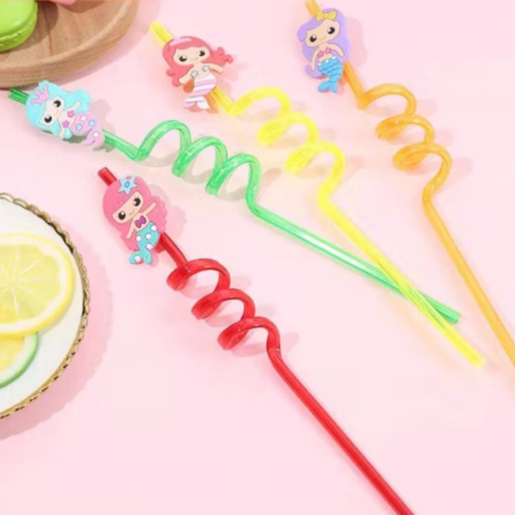 Kit 4 Canudos Espiral Temáticos Coloridos Festas Havaina Decoração Carnaval