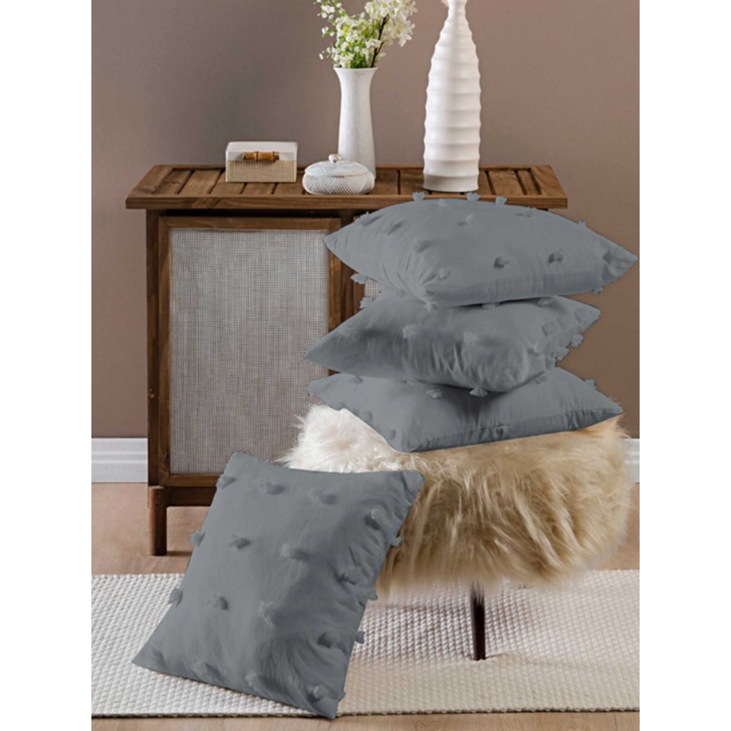 Kit 4 Capas de Almofadas 300 Fios Detalhes em 3D Pompom 45cm x 45cm e 60cm x 30cm Com Zíper - Poppy