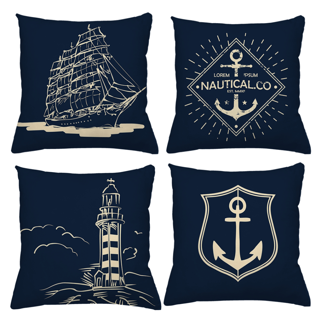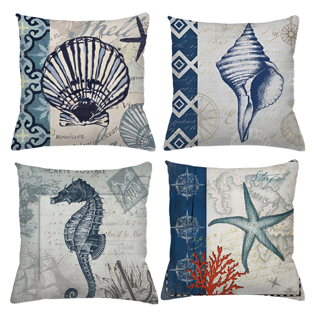 KIT 4 CAPAS DE ALMOFADAS DECORATIVAS OCEANO FUNDO DO MAR CONCHA OSTRA - TAMANHO 45X45