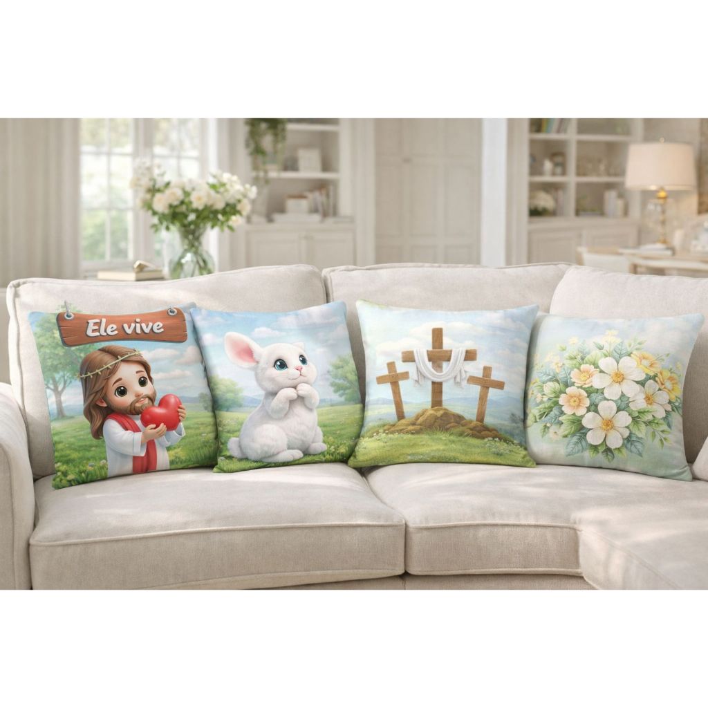 Kit 4 capas de almofadas tema pascoa 2026 oxford