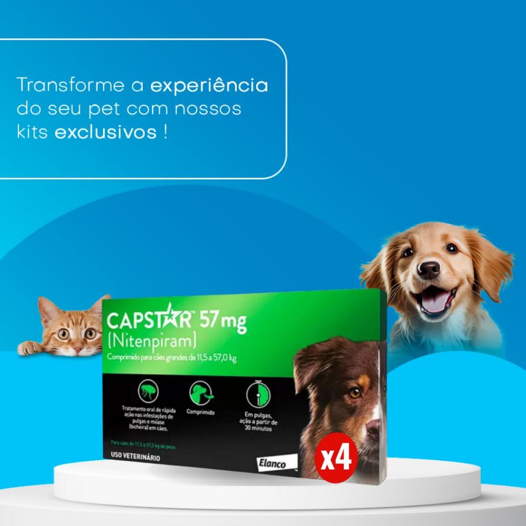 Kit 4 Capstar Antipulgas 57mg 1 Comprimido para Cães Gatos de 11 a 57kg Elanco