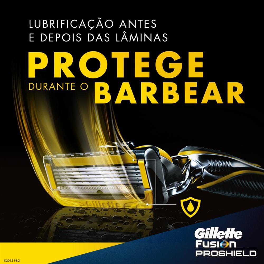 O Kit contém: 2 Pacotes de Cargas Gillette Fusion Proshield com 2 unidades cada. Deseja o barbear mais avançado da Gillette? Gillette Fusion Proshield oferece lubrificação antes e depois das lâminas para o proteger enquanto se barbeia. Além disso, a tecnologia Flexball se adapta aos contornos dos rostos para um barbear mais completo. Lubrificação antes e depois das lâminas Flexball adapta-se aos contornos do rosto para um barbear mais completo Lâmina de precisão na parte posterior para obter linhas bem definidas Todas as recargas Fusion podem ser utilizadas com qualquer máquina de barbear Fusion Sensação refrescante durante o barbear