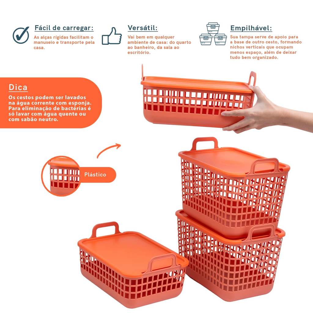 Kit 4 Cestos Telados de Plástico 2p/2m Terracota – Oikos