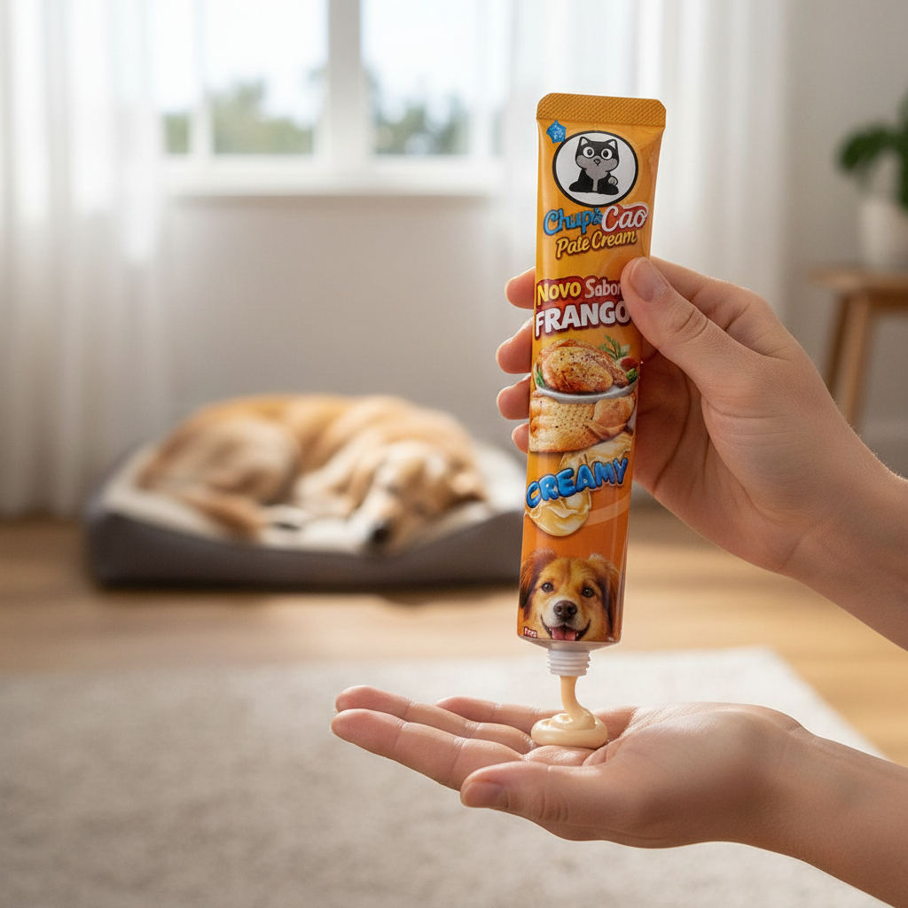 Kit 4 ChupsCao Pate Cream Suplemento Para Cão Sabores Patos, Carne, Cordeiro e Frango