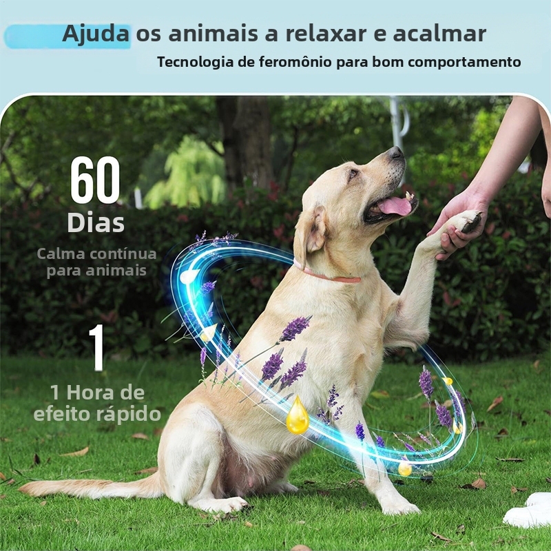 Coleira Calmante Feromônio para Gatos e Cães - Alivia Estresse e Ansiedade Seu pet apresenta comportamento de estresse, ansiedade (micturação inapropriada, tremedeira, agressividade) diante de mudanças de ambiente, consultas veterinárias ou ruídos fortes? A Coleira Calmante Feromônio é a solução para gatos e cães, proporcionando segurança e tranquilidade! Por Que Esta Coleira? 🌿 Feromônios + Óleo Essencial de Lavanda Natural Simula os feromônios do próprio pet, criando um ambiente familiar. Complementado por óleo essencial de lavanda, alivia ansiedade de forma suave e livre de substâncias tóxicas. 🐱🐶 Universal para Gatos e Cães Ajustável a todos os tamanhos: Gatos: Até 38cm de garganta Cães: Até 63.5cm de garganta Corte o excesso para um ajuste perfeito, sem aperto ou desconforto. 💧 À Prova d’Água e Transpiração Seu pet pode brincar, banhar e passear sem perder a eficácia. A formulação duradoura garante conforto constante, mesmo em contato com água. ✨ Conforto Sem Rejeição Feita em TPR flexível e macio, a coleira é leve e imperceptível. Seu pet se sentirá à vontade, sem recusar o uso. Quando Usar? Ideal para cenários estressantes: Chegada de novo pet/visitantes Mudança de casa/móveis Consultas, banhos ou viagens Ruídos (foguetes, trovões, obras) Detalhes do Produto Composição: Feromônios análogos + Óleo Essencial de Lavanda Material: TPR (seguro e ecológico) Ajuste: Cortável e adaptável a qualquer porte. Como Usar? Enrole a coleira na garganta do pet, deixando espaço de 2 dedos para conforto. Fixe a aba no local ideal. Corte o excesso com tesouras. Dê à seu pet a tranquilidade que ele merece! Com esta coleira, ele vive sem estresse e com mais alegria. 🐾