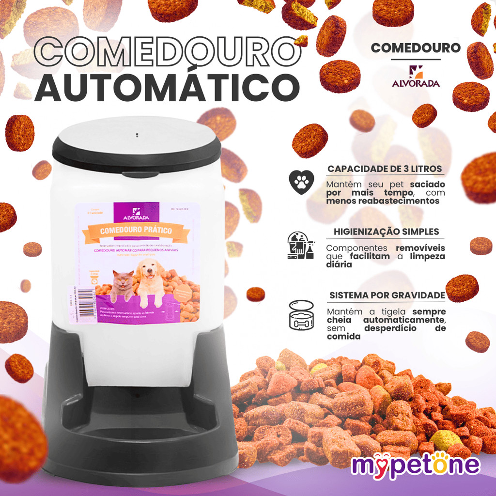4 Comedouro Prático Alvorada Pet 3 Litros Mais praticidade e higiene para a alimentação do seu pet com o Comedouro Prático Alvorada Pet 3 Litros. Ideal para cães e gatos de todos os portes, ele possui capacidade generosa e estrutura resistente, garantindo refeições sempre organizadas e acessíveis para o seu animal de estimação. Seu sistema de alimentação por gravidade permite que o compartimento inferior esteja sempre abastecido com ração, oferecendo autonomia e conforto mesmo quando você estiver fora por algumas horas. Por que escolher o Comedouro Alvorada 3 Litros: - Capacidade de 3 Litros: Armazena uma boa quantidade de ração seca, reduzindo a frequência de reabastecimento - Sistema por Gravidade: Mantém o recipiente sempre cheio conforme o pet consome a ração - Base Estável e Antiderrapante: Mais segurança na hora da alimentação - Fácil de Higienizar: Peças removíveis que facilitam a limpeza do dia a dia - Transparente e Funcional: Permite visualizar facilmente o nível de ração disponível Especificações Técnicas: - Capacidade: 3 Litros - Cores: Azul, Rosa, Preto, Vermelho Dimensões Aproximadas: - Altura: 22,5 cm - Base: 27 cm Material: - Reservatório em plástico translúcido de alta resistência - Base em polipropileno atóxico e livre de BPA Com o Comedouro Prático Alvorada pet 3L, você garante uma rotina mais prática e saudável para seu pet, com alimentação contínua e organizada.