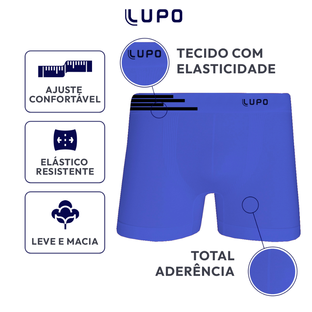 Kit Cuecas Boxer Sem Costura Originais Lupo 436 Características: formato anatômico, sem costura, muito mais conforto, malha com elasticidade para ajuste perfeito, acabamento com elasticidade multidirecional. Material: Microfibra Composio: 96% Poliamida, 4% Elastano Forro: 100% Algodão Lavagem: O fabricante recomenda lavar conforme etiqueta interna para maior durabilidade da peça. Guia de Tamanhos: P (36-38) M (40-42) G (44-46) GG/EG (48-50) Produto Original Lacrado Trabalhamos com as melhores marcas do mercado: Lupo, Mash, Colcci, Zorba, Trifil, entre outras. Vale ressaltar que todos nossos produtos são originais. O envio imediato! Tem alguma dúvida? Nos faça uma pergunta!