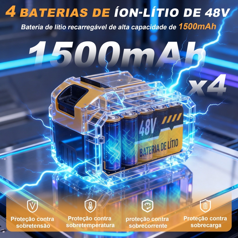 O Kit Certo Para Quem Quer Resolver Tudo O Kit Wetoke WKST-4 48V – Ferramentas Elétricas a Bateria foi desenvolvido para quem quer comprar uma vez e resolver todas as tarefas, sem depender de vários equipamentos separados. Com 4 ferramentas essenciais, este combo atende desde reparos domésticos até aplicações profissionais em obras, marcenaria e manutenção. - Destaque Principal Kit 4 em 1 – Furadeira, Impacto, Esmerilhadeira e Martelete Um verdadeiro combo de ferramentas elétricas, pronto para qualquer desafio. - O Que Nos Diferencia Projeto Completo e Inteligente Você recebe ferramentas compatíveis entre si, mesmas baterias, mesmo sistema — mais organização e menos gastos. - Perfeito Para Quem Busca Versatilidade Total Ideal para quem procura kit ferramentas a bateria, kit esmerilhadeira e furadeira, kit ferramentas elétricas profissional. - Qualidade Premium Construção Reforçada e Motores Confiáveis Motores brushless onde a potência é crítica e motor com escovas onde o controle é essencial. - Fácil de Usar Tudo Organizado em Uma Maleta Transporte fácil, armazenamento seguro e ferramentas sempre prontas. · Itens Inclusos - Chave de impacto 48V - Furadeira elétrica 48V - Esmerilhadeira angular 48V - Martelete leve 48V (3 funções) - 4 baterias 48V - 2 carregadores - 25 acessórios - Discos, brocas, empunhadura, luvas e proteção · Dados Técnicos Essenciais - Voltagem: 48V - Tipo de bateria: lítio - Capacidade: 1500mAh - Mandril martelete: 26mm - Impactos: 4500 bpm - Kit ferramentas elétricas sem fio · Por Que Este Kit Vale Mais? - Economiza tempo e dinheiro - Evita compras futuras de ferramentas - Ideal para profissionais e uso doméstico pesado - Alternativa inteligente a combos Bosch, Dewalt e Makita - Excelente opção para quem busca ferramentas elétricas completas · Um Investimento Que Compensa O WKST-4 entrega liberdade, potência e confiança. Um kit de ferramentas elétricas a bateria pensado para acompanhar você em qualquer projeto.