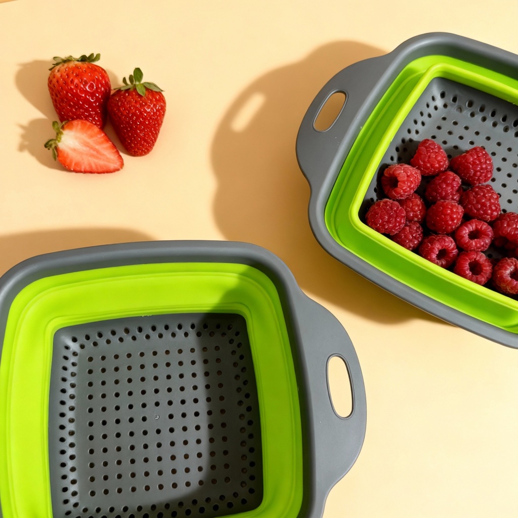OBS: O envio será feito em cores sortidas, conforme disponibilidade em estoque. Escorredor Peneira em Silicone Dobrável Quadrado Com o Escorredor peneira em silicone dobrável quadrado ficará muito mais fácil lavar seus alimentos. O grande diferencial deste modelo está no fato de o mesmo ser em silicone e dobrável, o que permite um armazenamento muito mais simples e prático. Além disso, o material em silicone e plástico reforçado de excelente qualidade garantindo que o produto tenha longa durabilidade. Informações importantes; Medidas aproximadas do escorredor aberto - 24 x 18 x 7.5cm(Comprimento x Espessura) Resistência - de -40º até 180º(Graus centígrados) Não pode ir ao fogo Cor - CINZA/VERDE Composição - Silicone e Plástico Conteúdo do envio - 2 unidade do Escorredor peneira em silicone dobrável quadrado