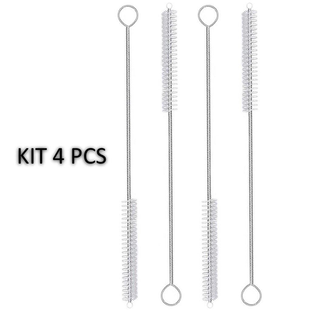 Kit 4 Escova de limpeza de canudo Cerdas Nylon Haste Inox Flexível 21cm