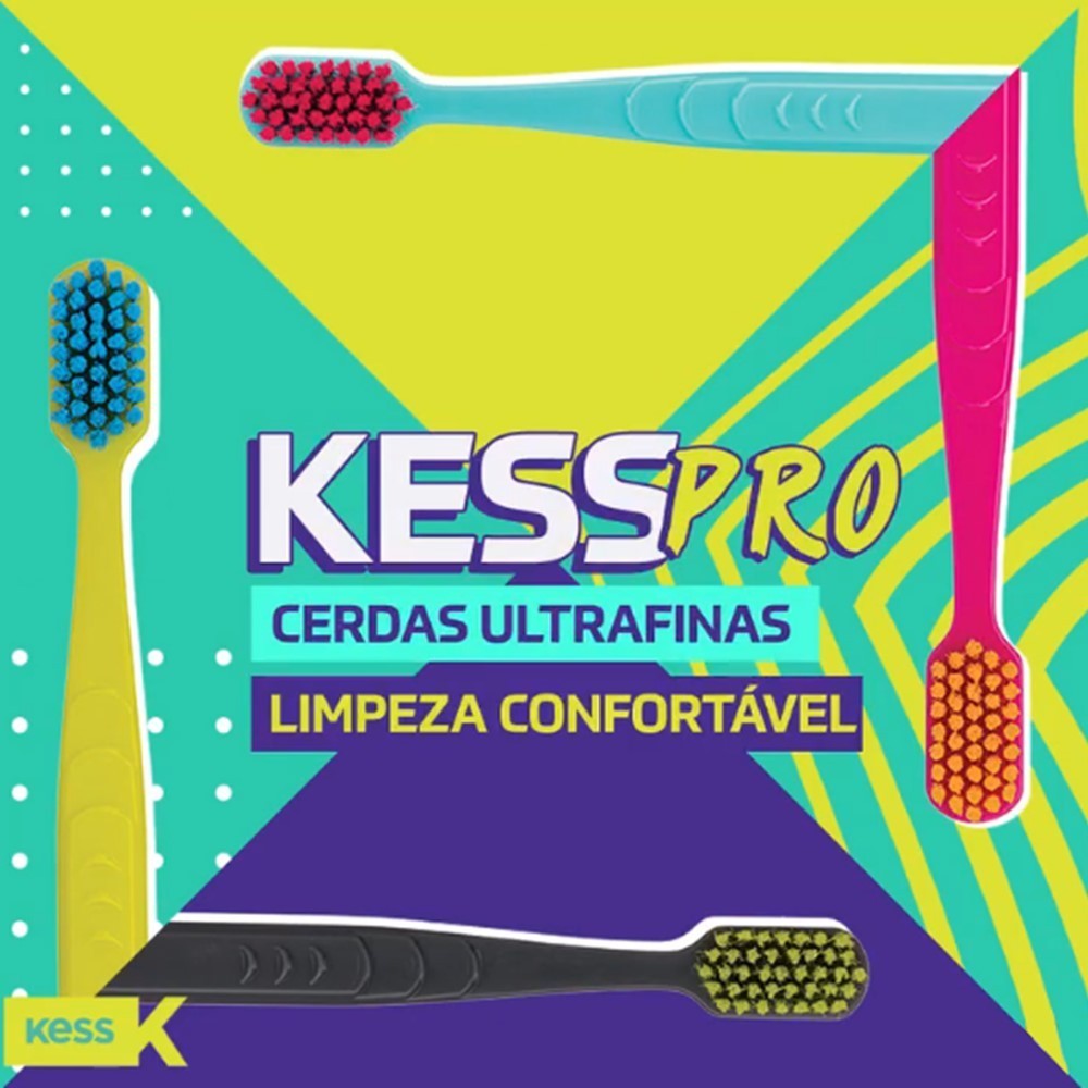 O Kit Anual Kess Pro contém 4 escovas dentais desenvolvidas para oferecer limpeza eficiente e extremamente confortável. Suas cerdas ultrafinas e extra macias, importadas da Alemanha e mais finas que um fio de cabelo, alcançam áreas difíceis e reduzem a agressão às gengivas ao neutralizar a força excessiva na escovação. As escovas possuem cabo reto com cabeça angulada para melhor alcance e acompanham capa protetora de cerdas, garantindo mais higiene. As cores são sortidas, enviadas conforme disponibilidade em estoque. Destaques: Kit com 4 escovas Cerdas ultrafinas e extra macias Limpeza profunda e confortável Menos agressão às gengivas Cabo reto com cabeça angulada Acompanha capa protetora Cores sortidas