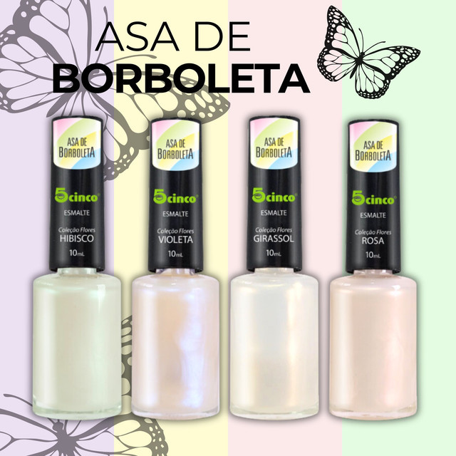 | Kit 4 Esmalte Coleção Asa de Borboleta Furta Cor 5Cinco 10ml este produto | R$ 22,90 | 40% | 4.9/5 | 81 |