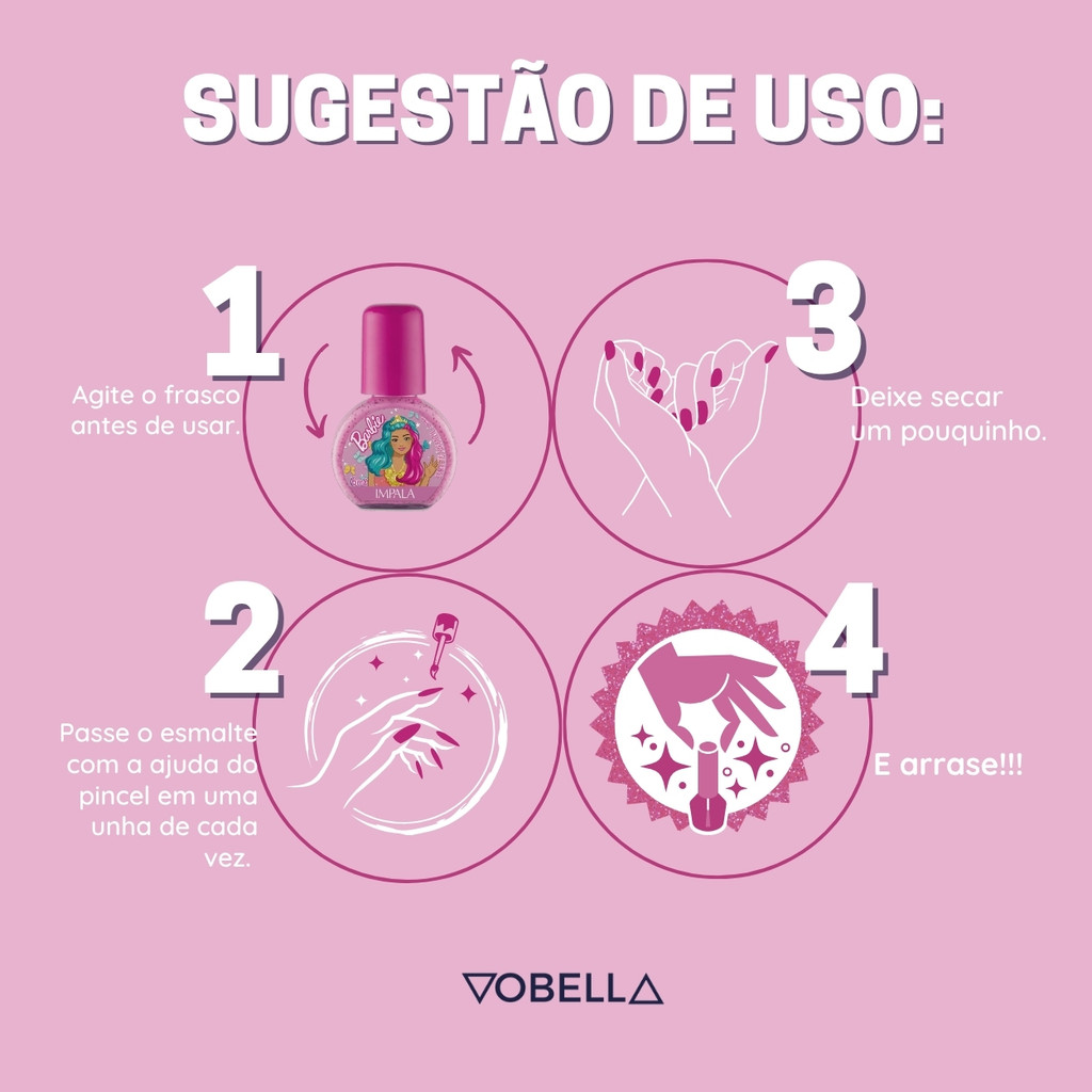 Kit 4 Esmalte Impala Infantil Coleção Barbie Glitter