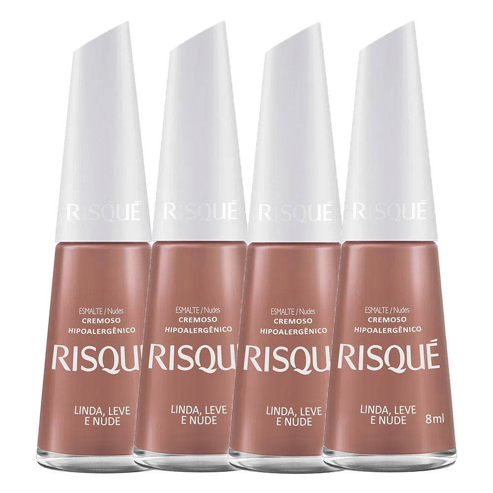 Kit 4 Esmalte Risqué Cor Linda, Leve e Nude com 8ml