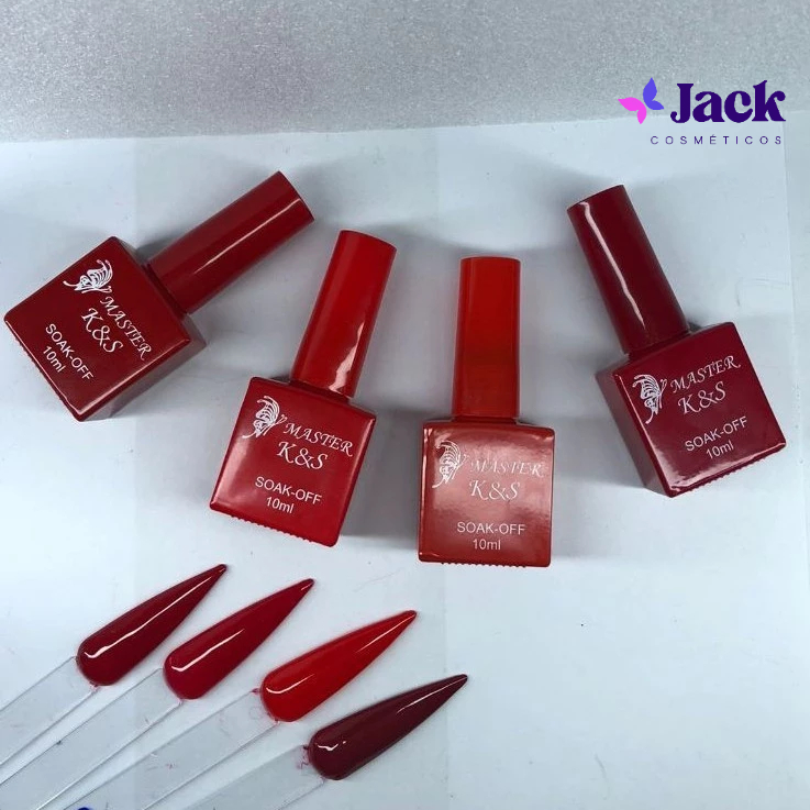 Kit 4 Esmaltes em Gel Tons Vermelhos K&S - 10ml - Alongamento Quadrado KS