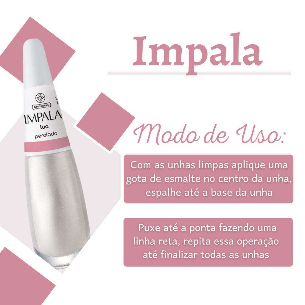 | Kit 4 Esmaltes Impala Branco Francesinha p/ Noivas Com Verniz Extra... este produto | R$ 22,00 | 44% | 4.9/5 | 450 |