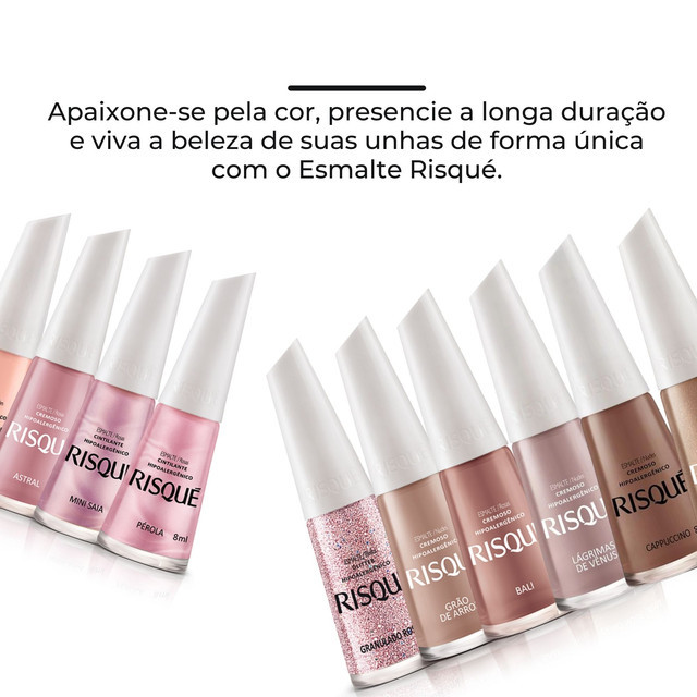 Kit 4 Esmaltes Risqué Glitter Rose Tons Branco Rosa 8ml Manicure Profissional