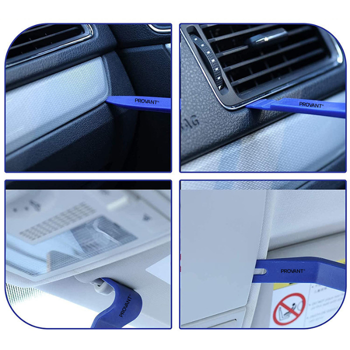 Kit 4 Espátulas Nylon Para Remoção Painel e Forro De Porta Automotivo Indicado para desmontagem de painéis, forros de portas, travas e grampos sem danificar ou riscar as peças. Fabricadas em nylon resistente, as espátulas proporcionam um acabamento profissional e evitam danos à lataria ou interior do veículo. Medidas aproximadas das espátulas: Espátula 1: 13 cm Espátula 2: 15,5 cm Espátula 3: 17,5 cm Espátula 4: 20,5 cm Detalhes: Material: Nylon reforçado Pontas: Diversas formas para melhor encaixe Uso: Ideal para desmontagens automotivas sem marcas Marca: Provant