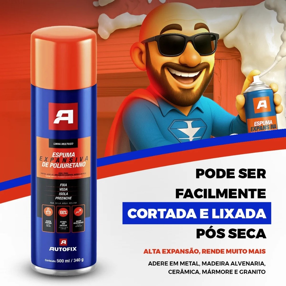 ATENÇÃO: Selecione o modelo e o volume desejado (330ml, 500ml ou 750ml) nas opções do anúncio antes de finalizar a compra! Não importa o tamanho do seu desafio, nós temos a solução. Com nossa linha completa de Espumas Expansivas, você garante o melhor custo-benefício, levando exatamente a quantidade que precisa, sem desperdícios. 🛠️ ESCOLHA A SUA OPÇÃO: 1️⃣ PEQUENOS REPAROS - Etaniz 330ml Ideal para: Vedação de caixas de ar-condicionado, pequenos buracos, juntas e bricolagem doméstica. Vantagem: Compacta e econômica. Não sobra produto secando na lata. 2️⃣ USO GERAL - Autofix 500ml Ideal para: Instalação de batentes de portas, janelas, encunhamento de alvenaria e isolamento de tubulações. Vantagem: O tamanho padrão do mercado. O equilíbrio perfeito entre volume e preço. 3️⃣ USO PROFISSIONAL - Autofix 750ml Ideal para: Grandes obras, preenchimento de grandes vãos, fixação de múltiplas esquadrias e uso intenso. Vantagem: Alto rendimento. Mais espuma por um custo menor por ml. Garante cobertura de grandes áreas. ✅ BENEFÍCIOS COMUNS A TODAS AS OPÇÕES: Isolamento Premium: Bloqueia poeira, insetos, vento e ruídos (isolamento acústico e térmico). Aderência Total: Fixa em madeira, metal, alvenaria, PVC, concreto e cerâmica. Acabamento: Após a secagem (cura), pode ser cortada, lixada e pintada. Praticidade: Todas as latas acompanham bico aplicador. 📋 MODO DE USAR: Limpe a superfície (borrifar um pouco de água ajuda na aderência). Agite muito bem a lata antes de usar. Aplique com a lata de cabeça para baixo. Preencha apenas 1/3 do vão (a espuma expande muito!). 📦 O QUE VOCÊ RECEBE: 04 Lata de Espuma Expansiva no tamanho e marca selecionados na variação do anúncio. 🚚 ENVIO RÁPIDO PARA TODO O BRASIL! Garanta vedação e fixação profissional agora mesmo. Escolha seu tamanho acima! 👆