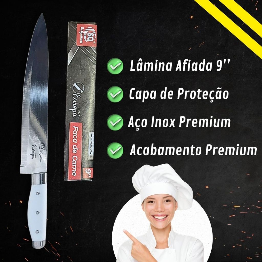 Kit 4 Facas de Cozinha Aço Inox Afiadas 9 Polegadas Linha Europa Para Casa Restaurante