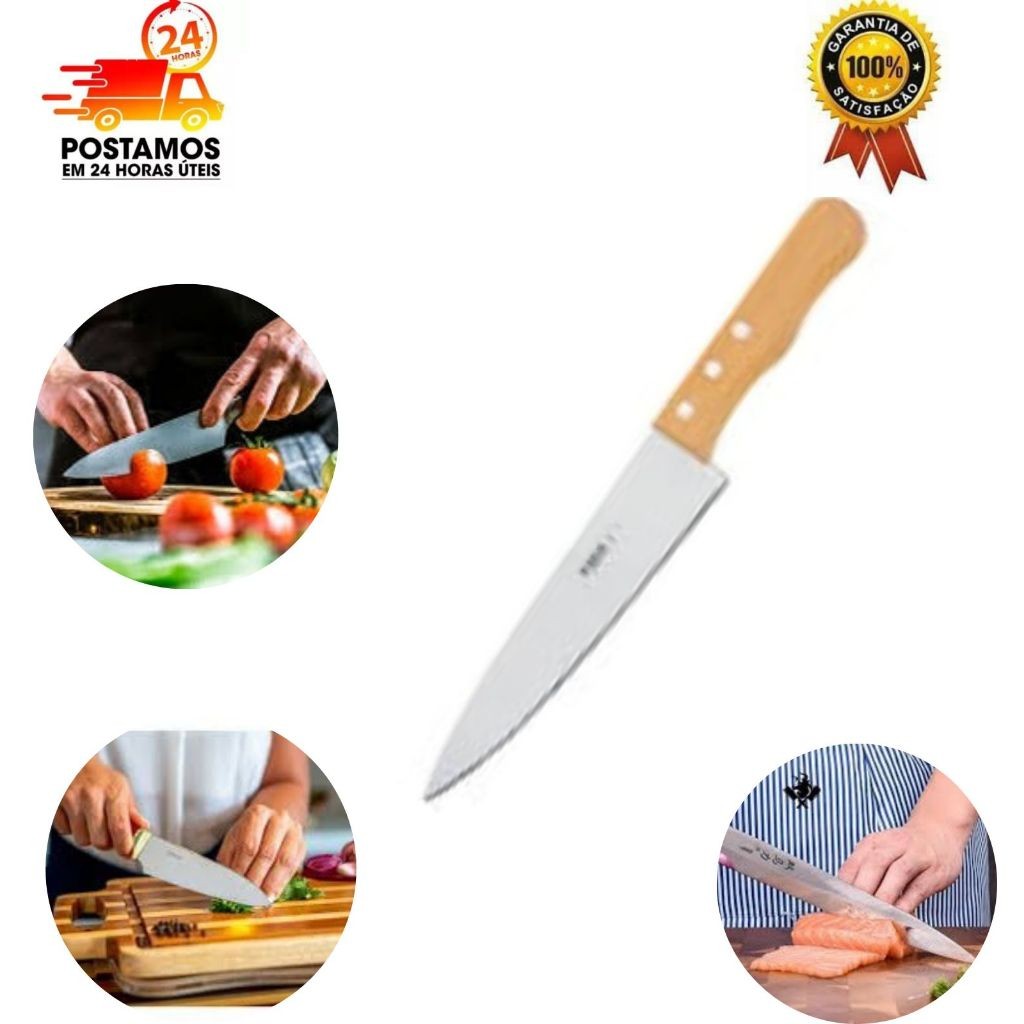Faca de Chef Artesanal: Elegância e Eficiência na Cozinha Dê um toque de sofisticação e qualidade à sua cozinha com a nossa faca de chef artesanal. Feita à mão com madeira nobre e cabo de inox de 5 polegadas, esta faca é uma combinação perfeita de beleza e funcionalidade. Características Principais: Lâmina de aço inoxidável de alta qualidade, proporcionando durabilidade e precisão de corte. Cabo ergonômico , projetado para conforto e segurança durante o uso. Design único e elegante, que adiciona um toque de classe à sua cozinha. Ideal para cortar uma variedade de alimentos, desde carnes até vegetais, com precisão e facilidade. Por que Escolher Nossa Faca de Chef? Artesanalmente produzida com materiais de alta qualidade para garantir desempenho excepcional. Versatilidade: perfeita para uso doméstico ou profissional. Durabilidade: feita para durar, com manutenção mínima necessária. Ótima opção para presentear amigos e familiares apaixonados por culinária. Adquira Agora e Transforme Sua Experiência na Cozinha! Não perca a oportunidade de elevar o nível das suas habilidades culinárias com a nossa faca de chef artesanal. Faça seu pedido hoje mesmo e descubra o prazer de cozinhar com estilo e precisão. Garanta a sua agora! Embalagem contém 04 facas "Imagens meramente ilustrativas. As características do produto, como cor, marca e quantidade de travas, podem variar conforme disponibilidade em estoque."