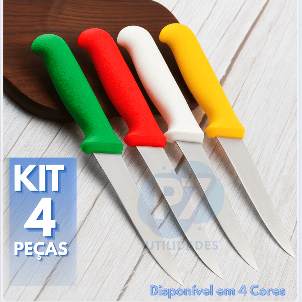 Kit 4 Facas Desossar Profissional Premium 6" Inox Cabo Ergonômico Disponível em 4 Cores Disponíveis